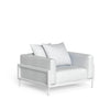 The CleoSoft Alu outdoor armchair is an element with a stiff and geometric character that is offered alongside other accessories with the more flexible style of the lounge seats. The structure is in powder-coated aluminium and the cushions are in removable fabric, easy to wash and weather resistant. Quick dry foam padding.